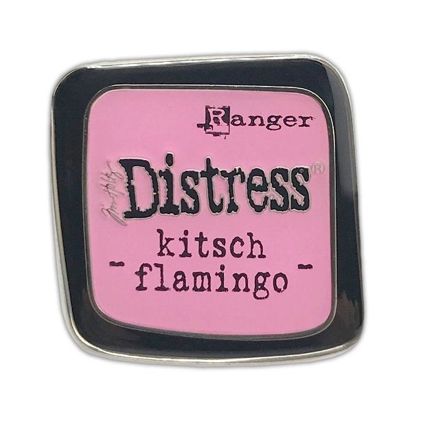 Tim Holtz Distress Enamel Collector Pin in Kitsch Flamingo. This fun pin is perfect for collectors and distress lovers alike. :) Perfect way to show off your favorite distress color!